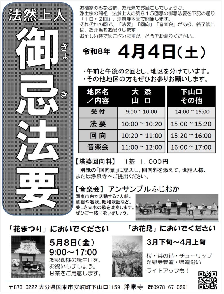 令和8年4月「御忌法要」のお知らせ